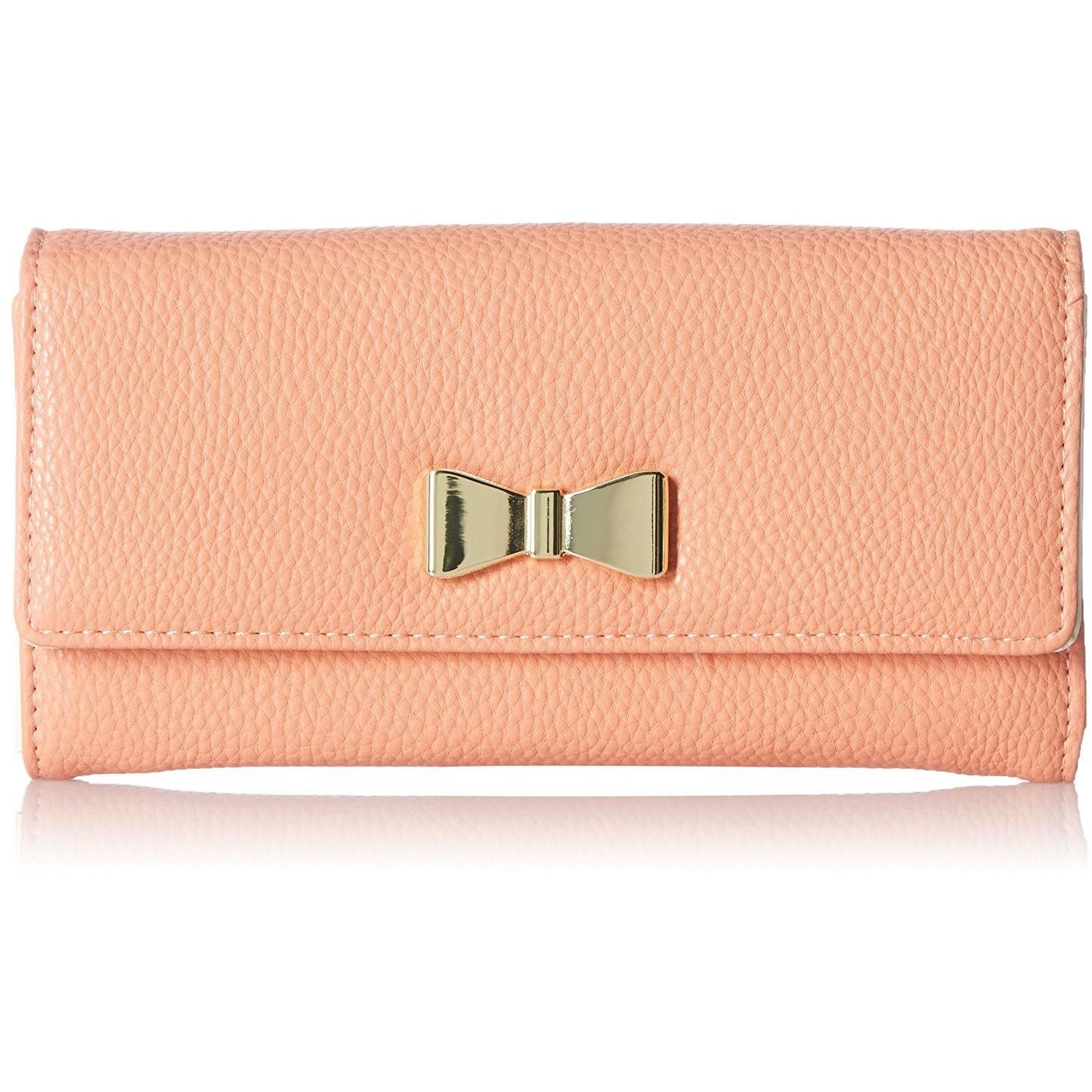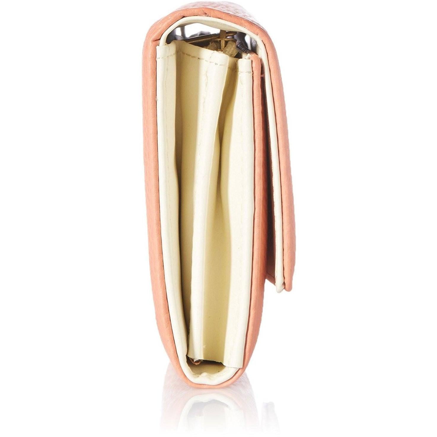 FEATURE: Colour- Peach, Closure- Magnetic Snap, Compartment- 3, Pocket- 2, Card Slot- 10